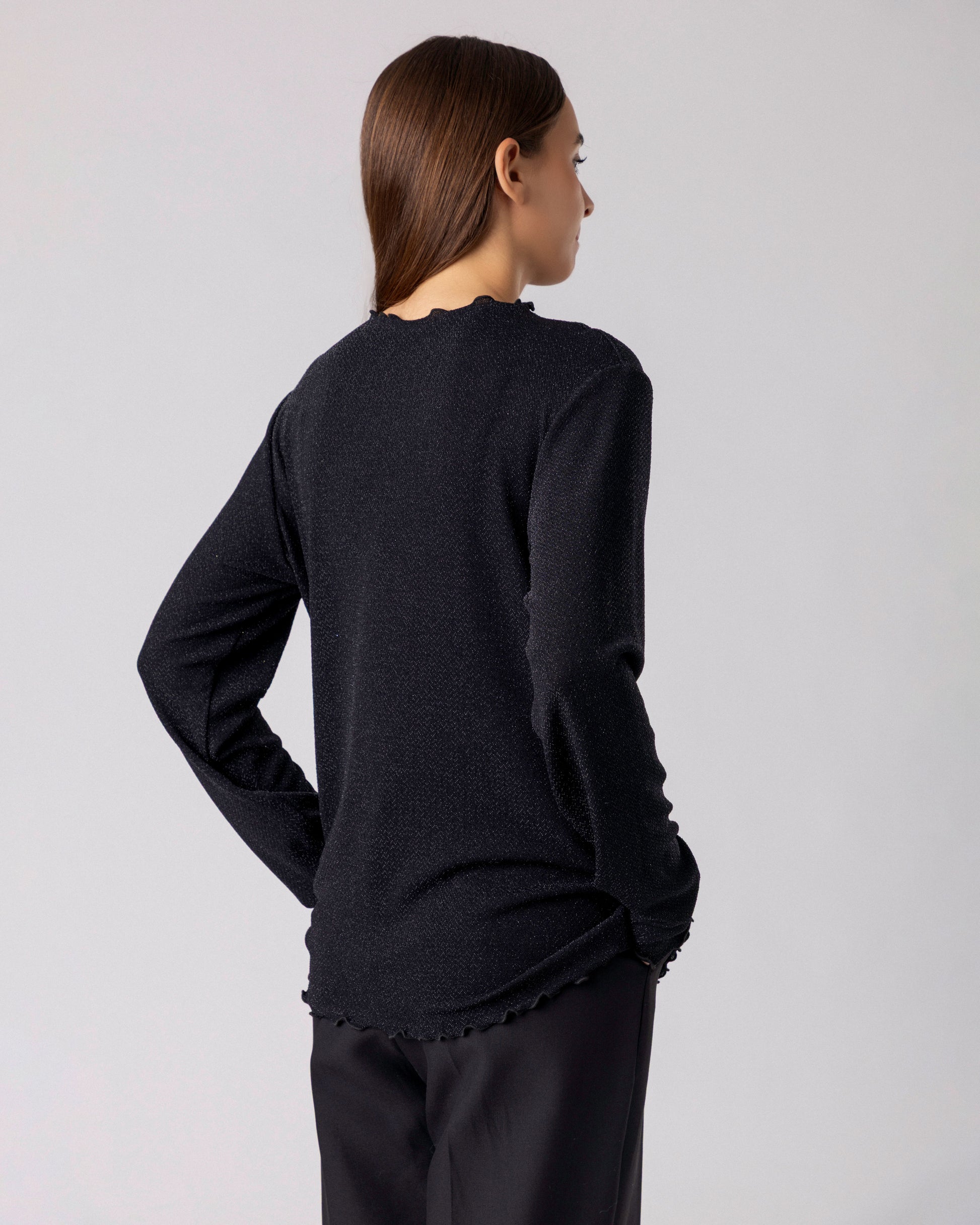 A refined blouse defined by clean lines and a subtle textured finish. Designed for effortless elegance, it brings balance and confidence to tailored looks while maintaining a modern, understated presence.