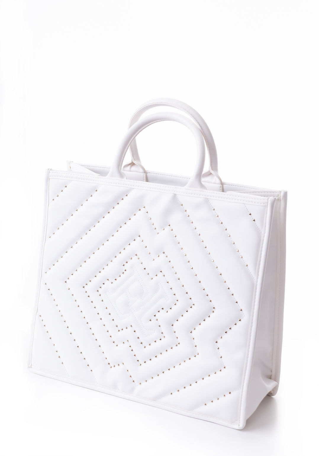 The bags have a one-of-a-kind design that was designed by the brand. The bags have a pattern on the outside that is embellished with rivets and forms the letters EL. The bags are made of high-quality eco-leather that follows eco-fashion trends and is waterproof. They are stylish and remarkable!