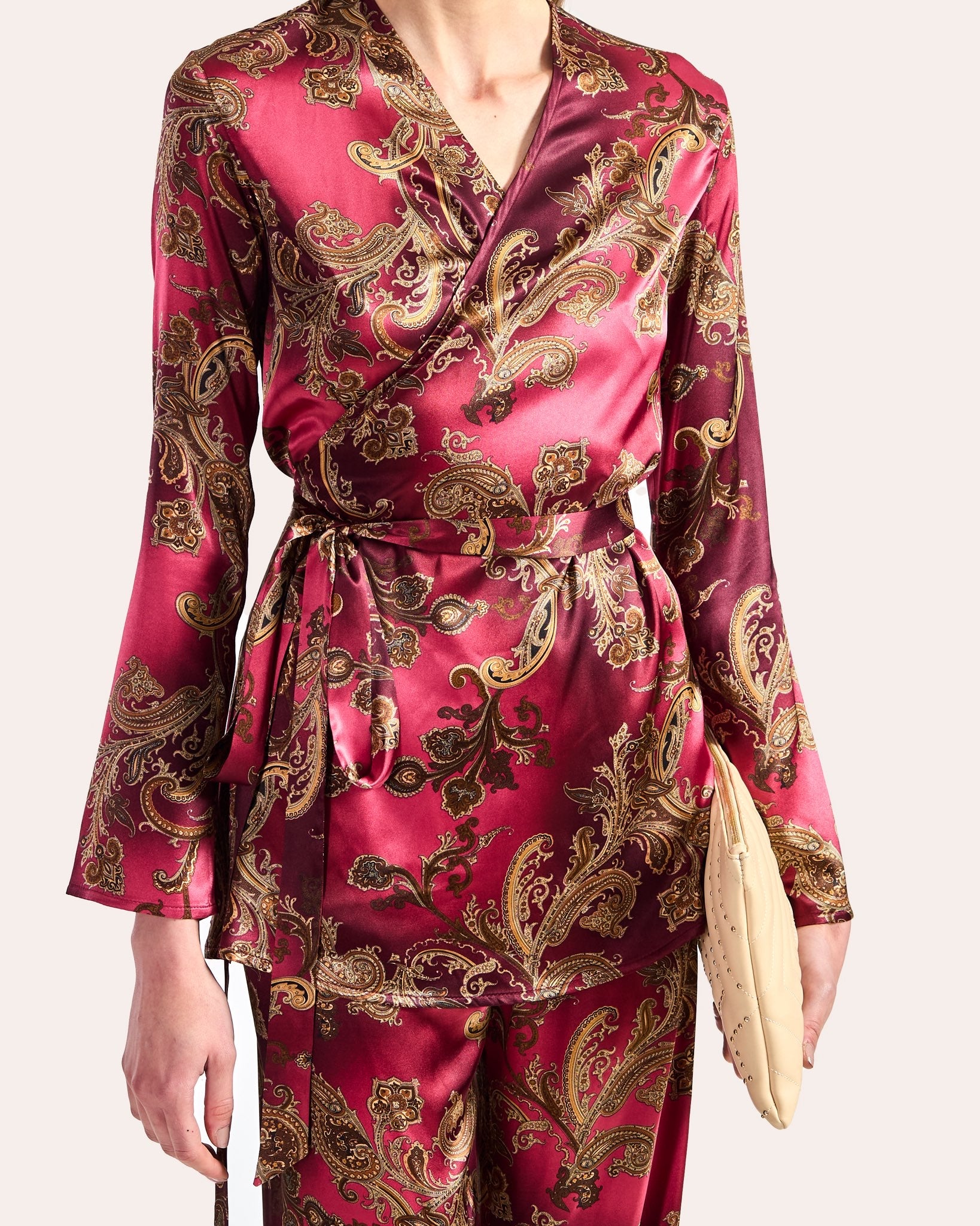 Tailored to accentuate your figure with comfort, the décolleté elegantly cinches at the waist and the belt allows you to adjust the neckline, while the free-fall trousers promise the perfect silhouette.