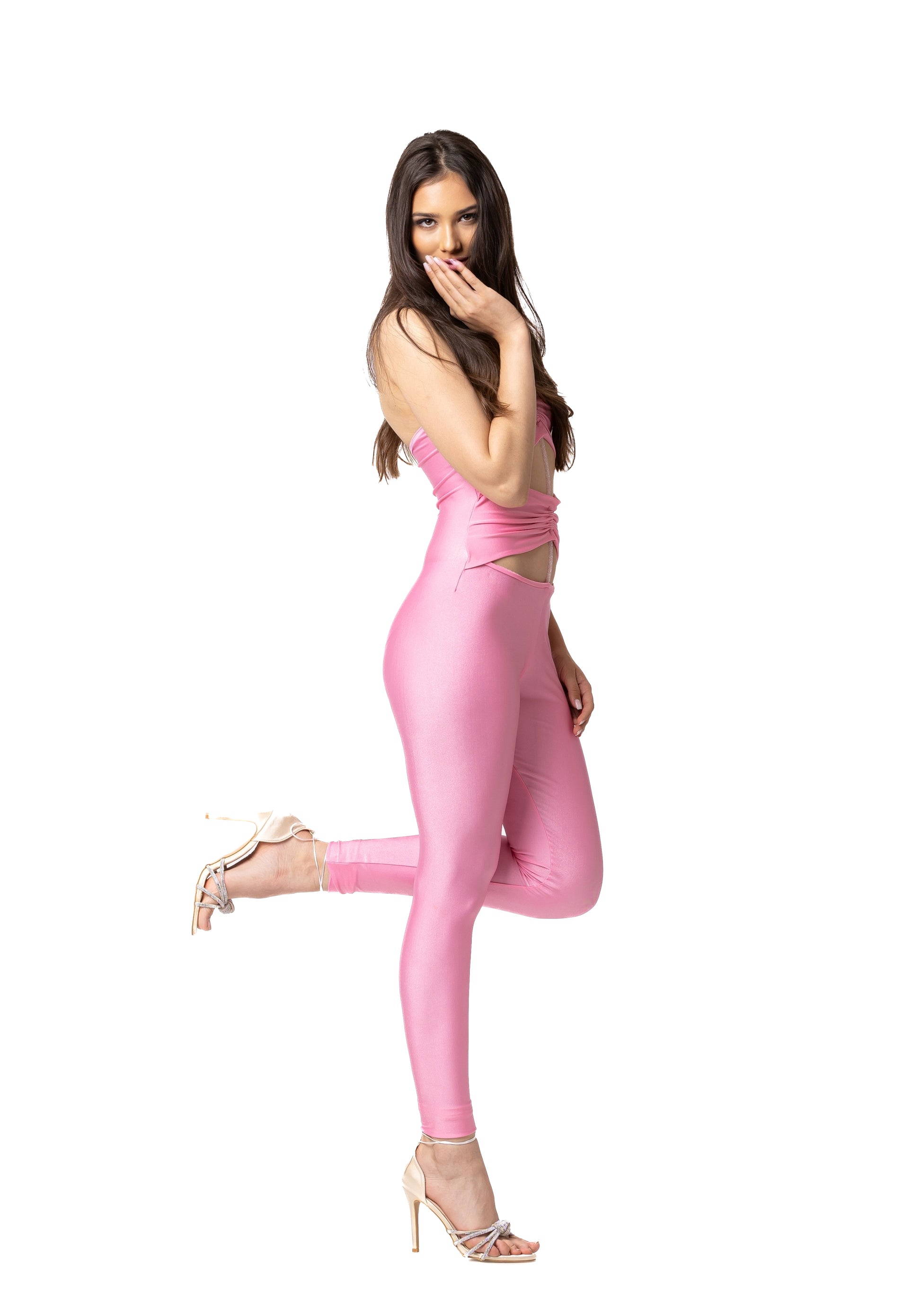 Комбинезон во тесен крој, кој сензуално ја следи и ја истакнува женската силуета. Во привлечна, пастелно розова боја и со симетрични исечоци напред, ова дизајнерско парче е задолжително ако сакате да дадете силна изјава за стилот.
