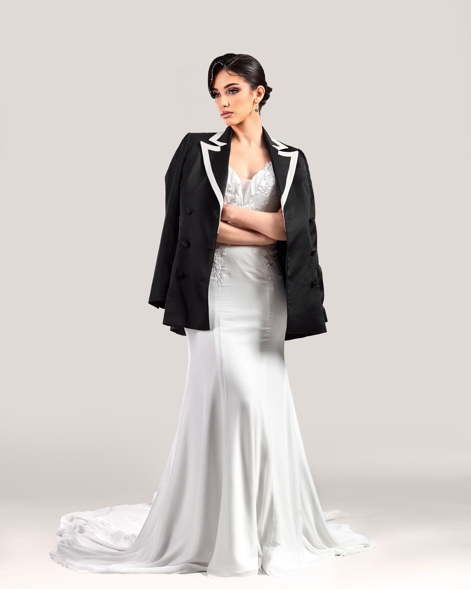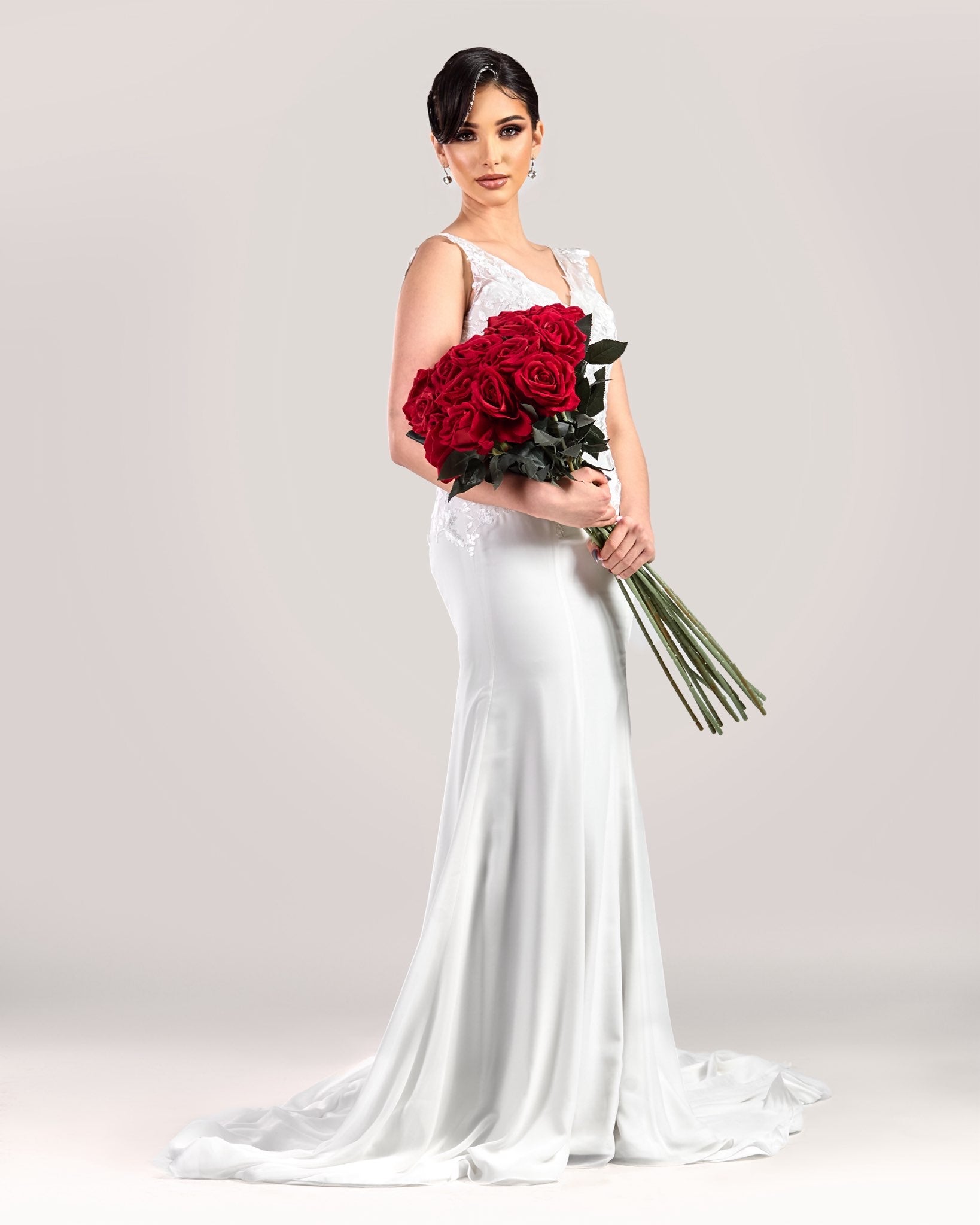 "Silken Whisper" is the embodiment of understated elegance and contemporary charm. Designed for the bride who adores simplicity with a touch of sophistication, this gown celebrates the purity of love and the joy of the special day.
