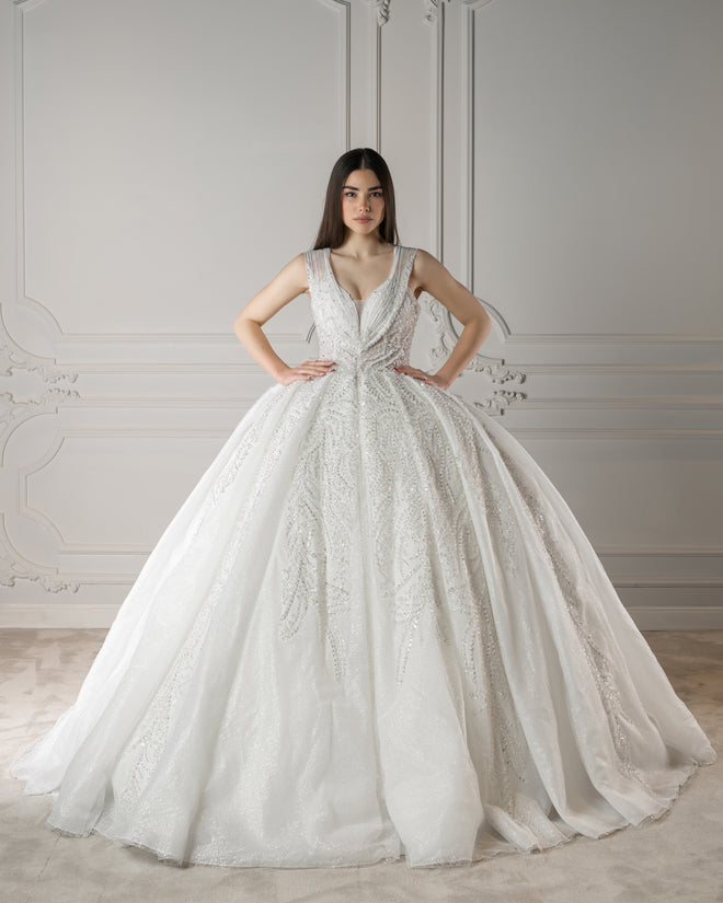 A celebration of detail and texture. Featuring hand-beaded fabrics, couture finishes, and elegant embroidery, this collection embodies refined luxury for the sophisticated bride.