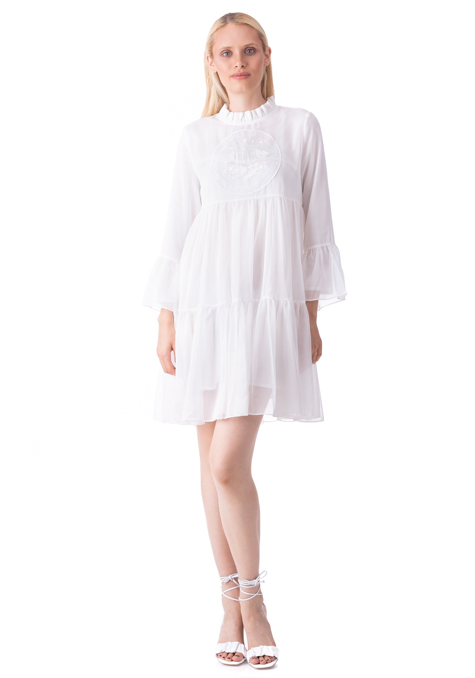 Embroidered Short White Dress
