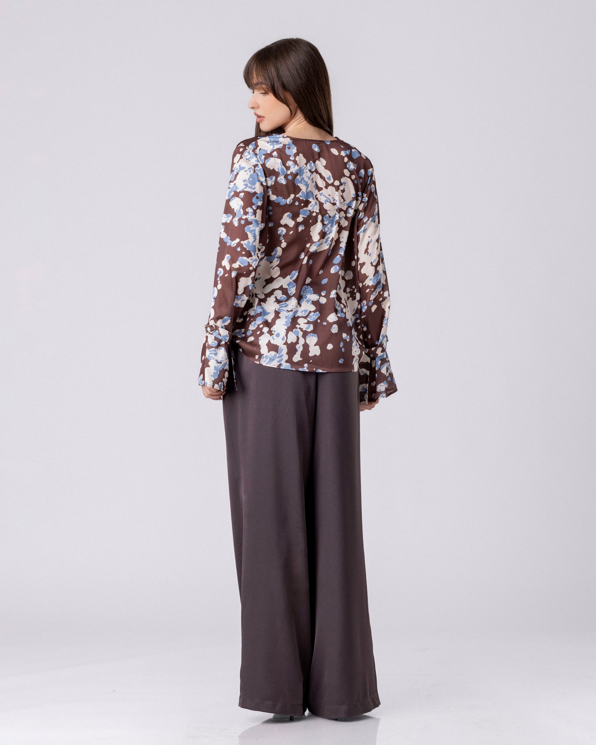 Изработени се од мазен, флуиден материјал со суптилен сјај, кој ја следи формата без крутост. Завршната обработка е прецизна, со дискретни шевови и минималистички пристап кон деталите, што ги прави панталоните лесни за комбинирање во елегантни и современи изгледи.