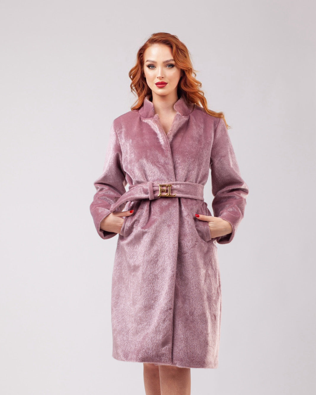 Introducing our "Velvetine Elegance Coat" – a luxurious garment that wraps you in the opulent embrace of velvety splendor. This coat boasts a sumptuous mauve hue, reminiscent of a serene dusk sky, that exudes sophistication. The plush fabric is soft to the touch, ensuring not just a statement piece, but a haven of comfort. The design features a wide, notched lapel that lends a classic touch, while the cinched waist, accented with a tasteful golden buckle belt, creates a flattering silhouette for any figure. The coat falls gracefully to a mid-length hem, making it the perfect companion for both day-to-day elegance and evening grandeur. Crafted for the discerning woman, it’s not just a coat but a symbol of timeless grace.